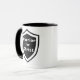 Kriminalare för Kristus två tonar mugg. ditt kristna engagemang med den här skölden logotyp mugg.
