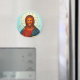 Den här magnet användor en ortodoxa ikon av Kristus Pantocrator. Läs mer om den här ikonen på http://www.window-into-heaven.com/2011/10/triptych-with-christ-theotokos-and.html