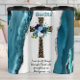 Den här bilden har inspirerande skript: "Jag kan göra allt sak genom Kristus som stärker mig filippier 4:13". Texten placeras nedanför en framstående leopard i kor, med blå och tealfärgad blommigt. Utformningen är uppbyggd av abstrakt blue och teal marmorerad gräns med skuggning av silver glitter, som skapar ett kraftfullt budskap från andlig.