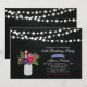 Fira din speciella dag med denna stilrena födelsedagsinbjudan. Denna design har strängljus, murbrukskrukor & blomsterbukett med en kritbakgrund.