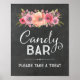 Godisbar skylt affisch för baby shower, bröllopsfest eller bröllop i rustik lantlig vår akvarell blommor och krittavla mönster i nyanser av rosa och persika med handskrivna textstil. Perfekt för en baby shower, bröllop, födelsedag eller bröllopsfest.