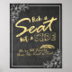 Moderna Bröllopsskyltar / Välj En Plats Inte En Sida Affischmallar - Elegant Guldskrift och Vit Blommig Ram på Grunge Svart Kritbakgrund.