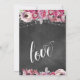 Det här sofistikerade men rustika bröllopsreceptionskortet har en strukturerad tavla i kritbakgrundsbild överlagrad med strängar av vita blinkande ljus och rösliga ljusa rosa akvarellblommor i boho-stil. Jag har använt ett elegant, virvlande typsnitt för att återge grafik som visar orden "Efter bröllopsfirandet"; på baksidan har jag placerat ordet "kärlek", utöver lager med blommor och ljussträngar. Din egen text läggs enkelt till för att anpassa den här mallen så lite eller mycket som du önskar. Använd mallfälten för att helt enkelt ange dina personliga uppgifter och klicka för att anpassa ytterligare om du vill flytta på några av de upplåsta lagren. Det finns en svag, ogenomskinlig svart överlagring ovanpå bakgrundsgrafiken; ta bort den om du hellre vill ha