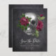 Låt dina gäster veta att du har bestämt ett datum för din bröllopsdag med detta gotiska skalle- och blommönstrade "save the date"-kort.