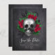 Låt dina gäster veta att du har bestämt ett datum för din bröllopsdag med detta gotiska skalle- och blommönstrade "save the date"-kort.