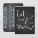 Personifiera detta charmiga krita mottagningskort med din information på baksidan. Framsidan är skriven med krita; "Ät, drick & bli gift".