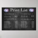 Denna stora samtida affisch för typografisk grafisk design prislista på väggen är gjord för att se ut precis som en svart tavla men är det inte. Det är en tekniskt avancerad mall som är konfigurerad och redo för dig att skriva över med alla dina egna salong meny kafé tjänster och priser.