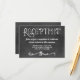 Bjud in gästerna till din fest med detta mottagningskort med kraftfull handritad text och en elegant dekorativ utsmyckning. Den mörka strukturerade bakgrunden med vit typografi och manusdetaljer skapar en varm, avslappnad känsla. Anpassa tid, namn på lokalen och adress för att sömlöst koordinera med din krita brölloppsserie.