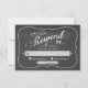 RSVP Sofistikerad bistro-inspirerad script konst rustik svart tavla bröllopsinbjudan set -- bröllopsfest svarskort -- Virvlande, lockiga fina svep och elegant vintage retro kalligrafi. Lägg till svarsdatum, brud och brudgums namn och bröllopsdatum eller anpassad information i denna lättanvända mall. Inspirerad av Edwardianska sekelskiftets affischer på svarta tavlan, har denna Art Nouveau-stil utsmyckade virvlar och handskrivna kolgrå och kritvita skrift med dekorativa accenter på svart tavla bakgrund. Ledig men klassisk modern stil är perfekt för trendiga moderna bröllop med en touch av romantisk rustik charm för traditionella par. Lämplig för både formella eller semi-formella landsbygd bröllop tema. Obs: Visas på små 3,5 x 5 inbjudningskort med skiffergrå svart tavla bakgrund -- klicka på Anpassa för att ändra teckensnitt eller se alternativ svart svart tavla bakgrund alternativ. Andra storlekar och stilar finns tillgängliga i butiken. Kontakta oss för hjälp med anpassning om du behöver ytterligare utrymme för dina bröllopsdetaljer. © Mars 2014. Denna produkt är en original skapelse av Wedding Trendy Shop. All konst och kommersiellt licensierade designelement är skyddade av amerikanska och internationella upph