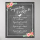 Krita meny med röda akvarellrosor och hästmotiv