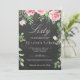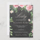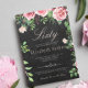 Rustik elegant sextioårs födelsedagsfest kvinnlig inbjudan med rosaktig rosa och röd burgunder handmålad peonrosor med gröna blad och löv och med ett trendigt chic handskrivet redigerbart kalligrafi manus över en mörkgrå kolkrit tavla bakgrund. +++++++++++ Lämplig för en vår, sommar trädgård eller höst / utomhus bakgård / vintage blommig milstolpe födelsedag / årsdag / firande fest .