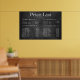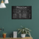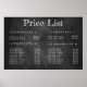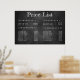 Denna stora samtida affisch för typografisk grafisk design prislista på väggen är gjord för att se ut precis som en svart tavla men är det inte. Det är en tekniskt avancerad mall som är konfigurerad och redo för dig att skriva över med alla dina egna salong menyer kafé tjänster och priser.