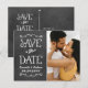 Skapa ett charmigt och minnesvärt första intryck med detta "save the date"-kort, där fantasifull, handskriven krittypografi sitter bredvid ert favoritparfoto för en varm, hantverksmässig känsla. Den matchande kritbrädan på baksidan knyter ihop utseendet vackert. En mångsidig design som känns hemma på en rustik ladalshögtid, en avslappnad bakgårdscelebration eller en excentrisk modern tillställning. Fullt anpassningsbar med era namn, datum och foto.