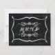 FÄRGPALETT: Svart och vitt DESIGNKOLLEKTION: Matchande RSVP-svarskort. En mycket modern men vintageinspirerad stil, en svart tavla typografisk typsnittskollektion för bröllopsinbjudan med matchande artiklar för en samling produkter som behövs för att göra din speciella dag komplett! En handritad krita virvlande ram med prickar omger en böjd text, virvlad, textart "join us" tillsammans med era namn, texten för bröllopsinbjudan och platsen. Det finns utsmyckade virvlande avdelare och ett gammaldags diagonalt "och"-et-tecken. På baksidan finns er monogram, era namn och datum med en matchande virvlande ram och koordinerande kant.