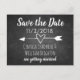Informera dina vänner och familj i förväg om din kommande bröllop med detta krit tavla utseende spara datum bröllopskort. Den vita typografiska textstilen är helt anpassningsbar och redo att mata in med din information.