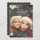 Modernt julkort med en fästet die-cut-form med vackra vita och röda blommor, tallgrenar och bär på en modern kritbakgrund.