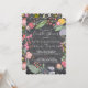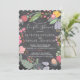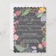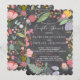 Blommig inbjudan för bröllopsfest med en söt handritad blomsterkrans i nyanser av korallröd, havsblå, grönbrun och salvia grön, stråande gul och rosafärgad med blommor och löv på en svart tavla bakgrund med en elegant modern samtida utbytbar skrivstil. -------- Inbjudan är idealisk för lantlig rustic vår eller sommar | blomsterträdgård | eleganta utomhus eller bakgård bröllopsfester, förlovningsfester eller bröllopsjubileum.