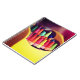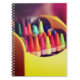 Den här bärbara datorn har färgstark kritor som visas på den.
