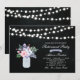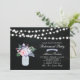 Fira din speciella dag med denna stilrena inbjudan small mall. Denna design har strängljus, masonkruka & blomsterbukett med en kritskriva bakgrund.