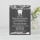 En rolig svart-vit krittablett-inbjudan till tandläkare eller tandhygienist-examen med lysande ljus längst upp.