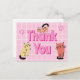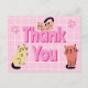 Säg tack med detta bedårande vykort. En cool retro stil rosa bakgrund med ett vitt rutnät ovanpå. I mitten står orden Tack i rosa bokstäver med en het rosa skugga för att få det att sticka ut. Till vänster, höger och ovanför orden finns söta kattritningar. och rosa tassavtryck i bakgrunden för att fullända utseendet.