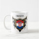 Den kalla vapenskölddesignen med kroatisk medborgareflagga färgar. Byt ut text "Kroatien" med din egna slogan för att skapa en kroatisk pridegåva för unik personlig. Personliggåvaidéer: #1 kroatisk pappa, mamma, morfar, mormor, uncle, moster, fru, make, [annan familjemedlem]; Stolt att vara kroatiskt, Kroatienstenar.