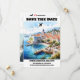 En vanlig, enkel, modern men ändå elegant fotomall har en vattenfärgsmålning av Dubrovnik kusten på framsidan och en fotomall för fotot av bröllop par på baksidan. Både framsidan och baksidan har en svart silhuett litet flygplan med en prickad linje bakom det som visar dess flyg väg och baksidan har en röd destinationssymbol för namn i den stad där du kommer att ha bröllop i Kroatien, plus en fyrkodsmall. Om qr-koden inte krävs tar du bara bort den. Anpassa de redigerbara mallarna till kostym efter dina behov.