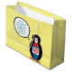 Ms. Penguin besökte Kroatien och fick en väst med den kroatiska flaggan i rött, vitt och blått. Ser hon inte bra ut i den på en stor presentpåse? Du kan anpassa genom att ändra orden i hennes pratbubbla till ditt speciella meddelande. Anpassa genom att ändra bakgrundsfärgen för att matcha din personliga smak eller ett festtema.