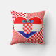 Flagga av Kroatien i hjärtformad kollage, omgiven av rött och vitt mönster i två storlekar ordnade diagonalt. Dekorativ kudde på torget är en perfekt gåva till någon som kärlek Kroatien och som är stolt över sitt ursprung.