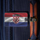 Bagageetikett med Kroatiens flagga i vågig tygstil. Denna design har kroatiska flaggans färger och design med en vacker vågande materialstruktur effekt. Denna flaggdesign är ett bra sätt att visa att du stolt är från Kroatien.