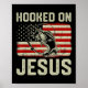Krok on Jesus Byb Fishing American Flagga Religiös Poster