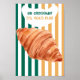 Ge lite av den parisiska charmen in i ditt rum med denna stilfulla croissantaffisch med frasen ”Un Croissant S’il Vous Plaît”. Designad med djärva vertikala ränder i rik grön, varm senapsgul och mjuka neutrala färger, fångar detta konstverk essensen av ett mysigt franskt kafé med en modern retro twist.
