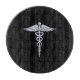 Den symboliska färgen som Caduceus Medical Symbol har här en svart bakgrund. Caduceus-ormarna är designade för att se ut som om de är tillverkade av krom. Bra för en studenten tillfälle, en påstående för ditt yrke, eller för en gåva med det medicinska utseende du är tittar för.
