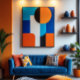 Den här grafiken utstrålar harmoni och energi i perfektens symmetri, som är en djärv blandning av geometriska former och vibrerande färg. Perfekt för moderna utrymmen som söker sofistikering med stark visuell påverkan.