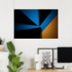 Triangulära former i blått, svart och orange möts i en djärv komposition. Ljus och skugga skapar djup i denna minimalistiska geometriska konst. Perfekt för dem som söker modernitet och kontrast i samtida inredning. Ett verk som balanserar energi och nykterhet med mästerskap.