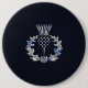 Design för applique för thistle för silverkromnågot liknande en skotsk på ett marinblått tryck för kolfiberstil.