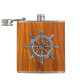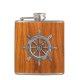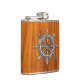 Ett modernt nautiskt silver-krom som en apparat på en teak-trädeskör för en bra anpassningsbar-kolvpresent. Använda länken "Be den här designern" för att kontakta oss med dina speciella designförfrågningar eller för att få hjälp med något av dina anpassningsbehov.