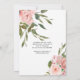 Dags att ta fram Prosecco! Vacker bröllopsfestinbjudan med texten kronblad och prosecco. Funktioner en flaska prosecco med rosa blommor och grönska i hörnen. Fantastisk typografi ger en modern utseende! Ytterligare information om bröllopsfesten på baksidan. Så stilfull design för din bröllopsfest! Se koordinerande produkter i vår butik, Enchanted Finch.