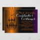 Cocktails och kostymer Vuxen Halloween-fest inbjudan, Lyxig och modern kronljus med spindelnät kryper. Klassisk och elegant men ändå skrämmande Halloween-fest inbjudan för en läskig soaré eller en cocktails och kostymer fest. Svart och lila bakgrund med orange glöd och svart silhuett av en hängande dinglande kronljus med ett spindelnät på den. Fin skripttext kan anpassas med ditt speciella meddelande.