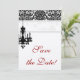 Elegant bröllop spara datum kort med vacker kronljuster damaskmönster. För att se hela sortimentet skriver du kronljusterbw i sökfältet.