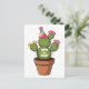 krukad kaktus med födelsedags hatt vykort