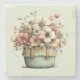 Stencoaster med en fantasifull elegant kruka med blommor. Gröna, rosa och krämfärgade nyanser. Arrangerad i en grön kruka med ett rutmönstrat tyg. Mysig vintagekänsla.