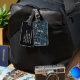 Bagagemärkren som presenterar ett mönster av att krulla, benämner skuggar in av blått och grå färg på svart bakgrund. Perfekt för hårrullear och krullande fläktar. Alternativ som tillfogar din kontakt info.