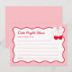Fira med Cherry On Top Bridal Shower Date Night Ideas-kortet, perfekt för en bröllostema med körsbär på toppen! Om det är en "Hon är körsbäret på toppen bröllosfest" eller om du letar efter idéer till Alla hjärtans dags bröllosfest, detta kort lägger till en romantisk touch till en Alla hjärtans dags bröllosfesttema. Perfekt för idéer till rosa bröllosfester, bröllosstämning med kärlek i luften eller en Kiss the Miss Goodbye bröllosfest. Skapa minnen med en röd och rosa bröllosfest eller en bow bröllosfesttema!