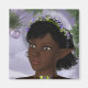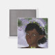 KRW Blommigt Fairy Fantasy Magnet. En vacker afrikansk fajé med blommor i håret mot en lavender måne fantasi