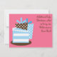 KRW Brown och Blue Polka Dot Uggla Birthday bjudande med tårta, bröst, kaka och hjärta. Utrymme på baksidan för ytterligare information