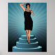KRW:s ritz Deco Flapper-design. En vacker brunettflapper i hennes svarta satin-klänning, med fjädrar och pärlor mot en blå, klassisk konsthugga. Perfekt för 20-årsjubileet fläkt.
