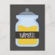Färgfull bild av krydda burk med tumörkrydda. Gult och grått kökstema för matlagning av älskare, hemkock eller kokokare.