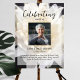 Den perfekta minnesaffischen för att hälsa familj och vänner välkomna när de kommer till firandet av din älskades liv. Speciellt för någon som älskar blommor och kanske trädgårdsarbete - designen har ett fyrkantigt personligt foto, 5 rader med anpassad text och ett bakgrundsfoto av en vacker vit krysantemum. Du kan enkelt byta ut detta med ditt eget bakgrundsfoto. Klassisk men unik - den här mallen är så enkel att anpassa och kommer att bli en underbar minnessak.