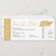 Vackra frakter för marschen Faux guld och handflatan träd på ett modernt minimalistiskt boardingkort, förutom det datum som ser ut som ett flygplan biljett, designat för ett bröllop på en frakt eller ett gigantiskt båtbröllop. Gästgäster kärlek som tar emot dessa roligt bröllop-datummeddelanden som innehåller reseuppgifter på baksidan så att de kan börja planera sin resa.